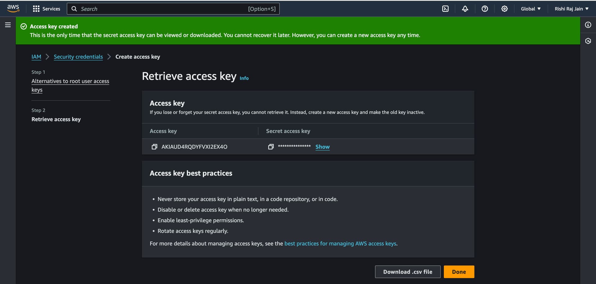 • Enter AWS_ACCESS_KEY_ID as the value obtained earlier.